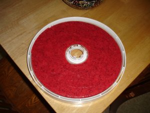 So, I decided to smoosh up some cranberries with some oranges and a drop of honey and dehydrate the heck out of it. Voila! A pizza-for-one-sized fruit roll-up! And it turns out that really you should add mounds of sugar. Or at least more than a drop of honey. Maybe a banana or two would have done the trick. Well, the dog is enjoying it piece by piece anyway.