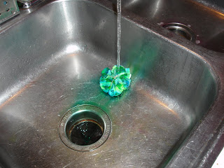 Step 4: Rinse the bright balls and coils in warm-hot water until the water rinses clean. Put them in the washer with liquid soap and let the machine do its magic. Then put the won’t-ever-run-again items in the dryer and let that machine do its magic too.
