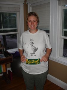 Even though we had only been in Quebec for one day, Vermont was so close and the French confusing enough to draw us over the border. We thought we’d sidetrip to Missisquoi Wildlife Refuge, another suggestion from our Off the Path book. And we ended up at a marsh, surprise surprise. It was pretty, but definitely marshy. And then five minutes from the car, deluge. No warning; just a curtain of rain and a wall of black clouds swept in out of nowhere and drenched us completely. Since we had a few extra days that we didn’t spend in Quebec, we decided to continue down the islands in the middle of Lake Champlain. We stopped in at a few places off the road to ask about accomodations, dripping wet on their lovely New England carpets. One place suggested we try the motel down the street, Shore Acres, since they’ve seen dogs there before. We were game to look at the place, even though “motel” didn’t sound promising. We ended up at a lakeside resort — not pretentious though. They had a golf course and a croquet field and tennis courts and a floating dock and horseshoe pits. But because guests might want to play such games. Because it would be nice. Not because they were uppity. So we played a game of Scrabble in our room with the lake in view and then took the dog down to the rocky beach so we could all have a swim. She did too! Eliza actually technically swam. We reeled her out to us where we were standing in waist high water; she was scared, but we were very proud and told her so. And my bruises are now healing.