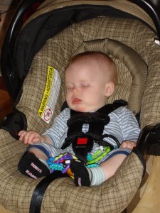 If she’s in he front carrier and you take a drink from a cup, she’ll turn her head all the way around and up to see what you’re doing with the mug.