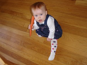 I know we’re supposed to teach her not to play with her food, but sometimes Mom needs a minute to fix lunch and regular toys are not enough when you’re a hungry baby. She continues to be a fairly adventurous eater. Green foods are still a bit of a challenge though. We found that the stereotypical airplane spoon flying into her mouth seems to work for a serving of broccoli or asparagus. Guess there’s a reason people do that.