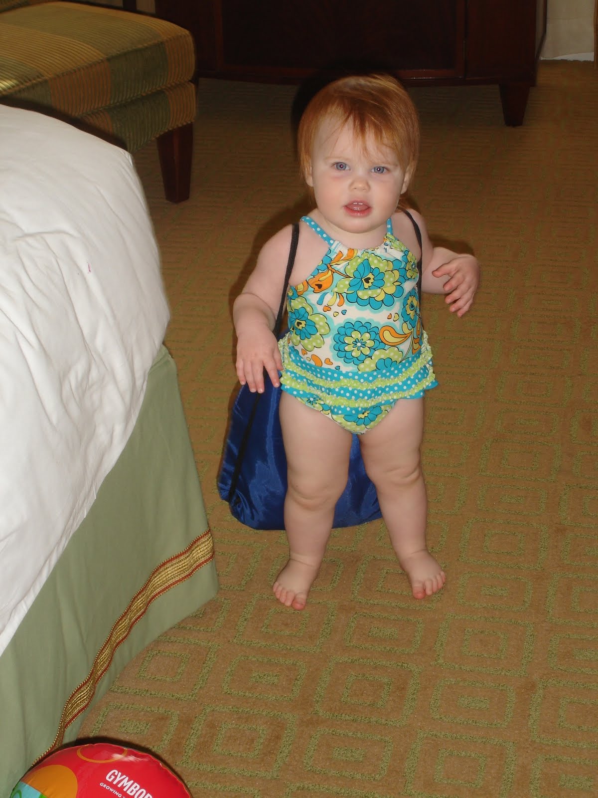 That was our big outing. Then it rained and we went mall walking (yeah yeah, I know, but it was attached to our hotel in the boonies and there was an awesome play area where Mags climbed and scooted and slid and got patted on the tummy by a little boy). And every morning we took the elevator down 18 floors to the spa and had a nice swim followed by a luxurious shower and cucumbers on our eyes (Maggie tried to eat hers).