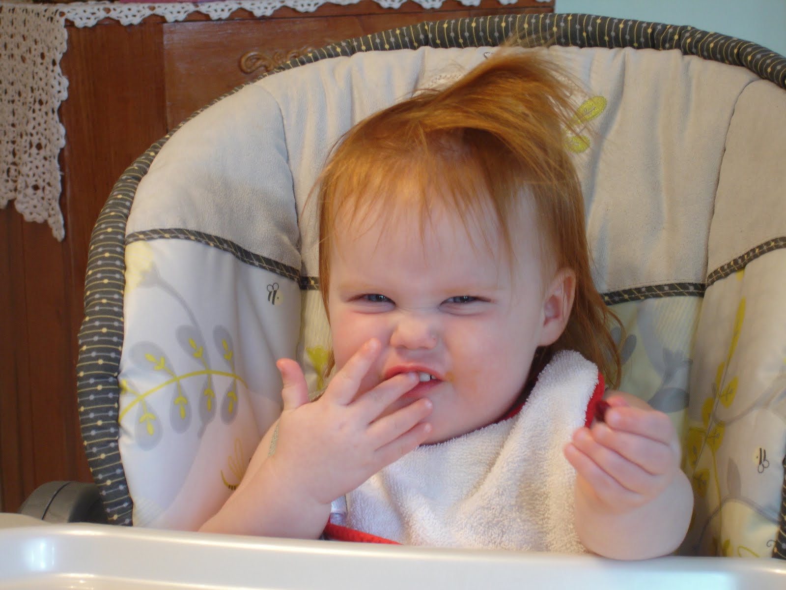 And she’s smiling even though her hair looks that way because she’s gotten to eat this.