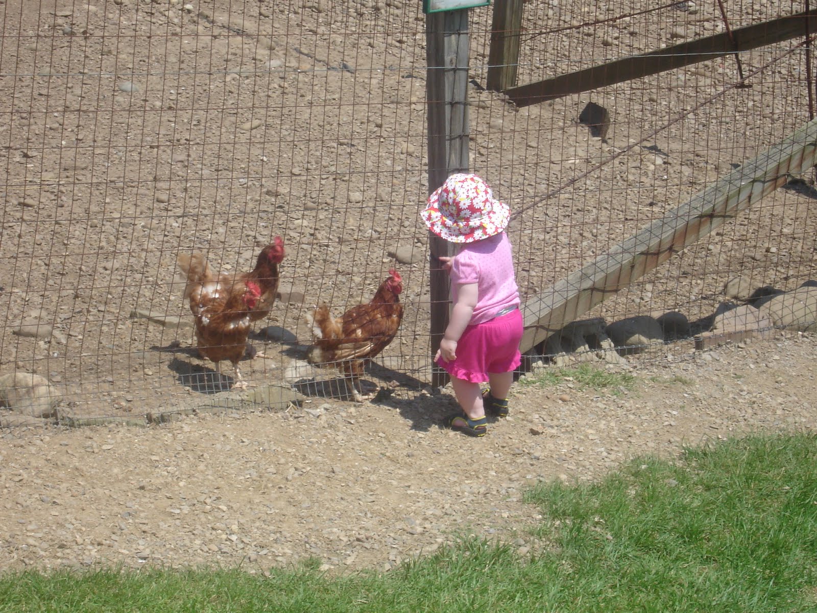 Talking to the red chickens;