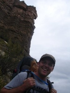 FYI: From out our front door. And don’t do the east approach like we did. It’s longer to come from the north, but sooooo much smarter, with no bushwhacking or slippery ridge walks.