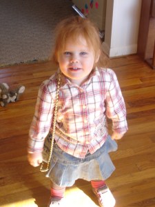 A great week. We just played and went to the pool and hung out with friends and cooked and read and generally had just a good low-key week. She was in time-out 3 times before lunch one day, but that was for infractions like “If you do that one more time, you have to go to time out. Understand? Okay then, time out.” So she’s testing what boundaries are real and so forth. But all in all she’s paying attention and listening and all that good sort of stuff. Oh yeah, and there was the one time when she got bored in the car and gagged herself for giggles. She was surprised by the result, I think. And didn’t much appreciate being hosed down in the shower. Hopefully that will teach the lesson itself.