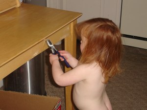 We’ve had a very naked week. I went back on my “done with diapers” decree when she was having more accidents on the floor than successes in the toilet. But then a couple days into re-diaper-dom, she asked to wear nothing at all. So we had a nakedy day, and she had no accidents. Then the next day we also had a nakedy day; no accidents. The day after that, nothing either. So, we’ve become a sort of nudist colony around here and are saving dollars every day on diapers! It’s very exciting for us parents, and she’s loving the licorice she gets as potty treats. I think she’s a little proud of herself too.