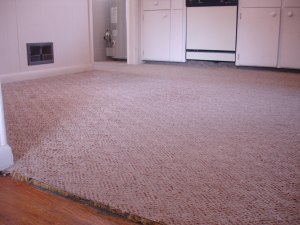 So while Maggie was in Albuquerque last week, Bill and I got down and dirty with the kitchen carpet. I still don’t understand why anyone would decide to put carpet in the kitchen and laundry room. But whatever. We just know we didn’t want it anymore. It was ugly, it was dirty, it was stinky, and it wasn’t the greatest for potty training a naked child.