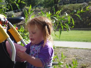 We’ve been spending time at the river this week. We attempted a float down with Mags, but after Mommy fell off the tube and accidentally dunked her, she wanted nothing but Daddy on dry land (way to go, Mom). On the shore is where she likes to be. It’s still pretty chilly water, so she prefers to find a stick and draw in the mud. She does like to find interesting rocks under the water, and she will tell you all about the plants that live in the river (“they got stuck to mama’s toes”). She also thinks it’s funny to see a boat go by with a dog in it, and she’ll blow kisses if instructed to. In another month when the water is warmer and lower, I think she’ll be more inclined to walk and wade and explore actually in the river. Until then, we’ll keep doing more of this: