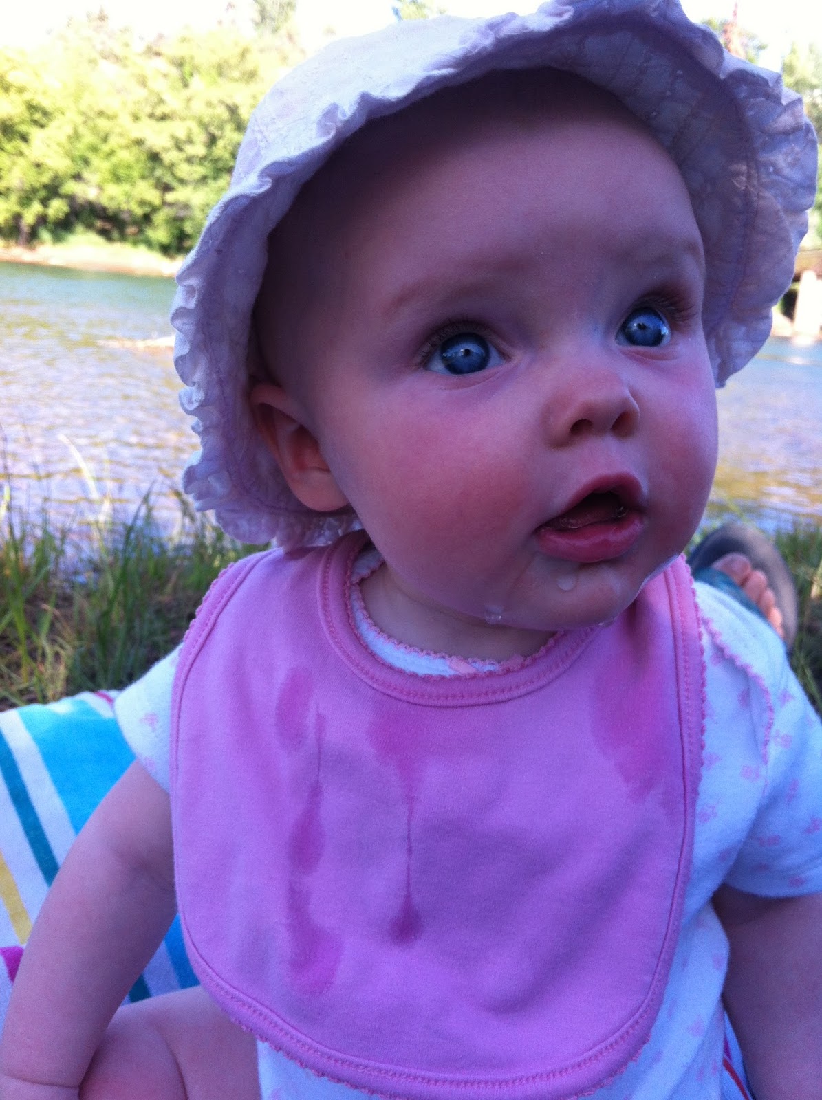 Show of hands: Who’s tired of hearing me say “I think Tess is working on teeth”? Okay okay. Your wish is my command; I’ll stop saying it for awhile. Because she popped out two yesterday! Whew. It’s about time! So she now has tiny toothy ridges for her two front bottom teeth. Very efficient of her, I think, to do two at once. Starting Wednesday through today have seen her more touchy and grumpy and needy than normal. Luckily she really likes to be outside and luckily we live on a very quiet street where we can walk up and down in the cool evenings to fall asleep. She really has been quite the trooper!