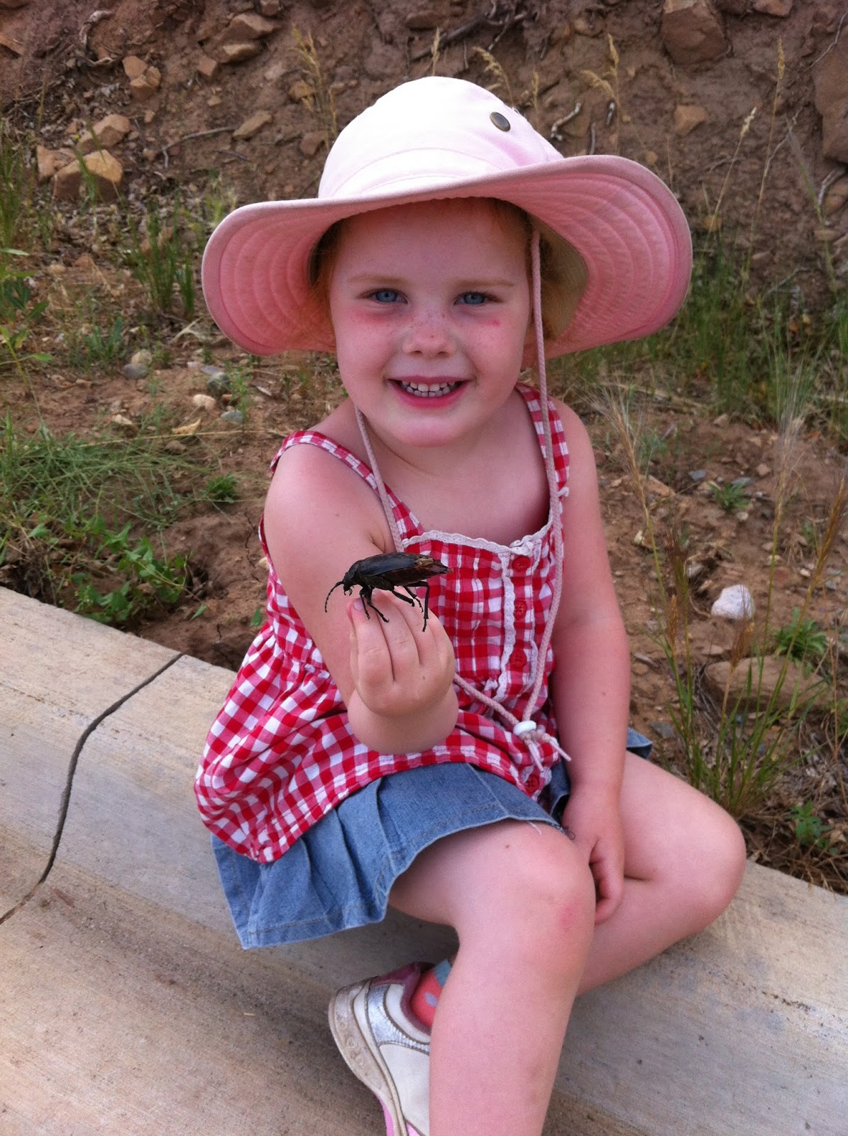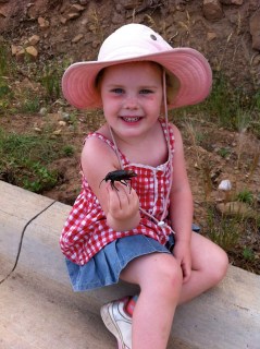 We may have entered a bug phase with Maggie. There is this guy, a huuuuge beetle we found dead in the gutter on our way home from a hike. Maggie just sat right down and picked it up and started looking at it from all angles. She was very curious about how it died (perhaps drowning in a huge downpour the evening before, perhaps heat exhaustion and dehydration from earlier in the day). And also very curious about if the ants would do a good enough job eating him up now. The last thing she said upon leaving him in the gutter was “let’s come back and check if the ants have eaten all of him up.” And a couple days ago Mags came in from the backyard with something between her thumb and index fingers and started walking upstairs. “Whatcha got there, Maggie?” I asked, feigning nonchalance. “A roly poly. I’ve decided he’s going to be my pet upstairs.” “Bugs belong outside, sweetie, especially when we’re staying in someone else’s house.” “Blah blah blah blah blah blah.” “Blah blah blah blah blah blah.” “Blah blah blah.” “Blah blah blah.” “But it’s just a rock. I’m just pretending.” “Oh. Ok. That’s ok then.” When I went upstairs later, I looked on a windowsill and there indeed was a roly poly. “Maggie, this is a real roly poly. I thought you said it was a pretend one, a rock.” “Well, it’s just a rock that moves.”