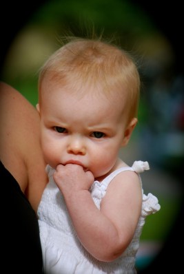 And she’s off! We have a crawling kiddo in the house! Tess has been really close to it for days, and she’s been making a lot of distance by repeating a pattern: sitting, reaching forward, splatting on her tummy, then rolling and sitting up again. But yesterday afternoon she rolled a toy away from her, screwed up her concentration, and did some bona fide crawling. Of course she was very proud of herself afterward, which was really the best part.