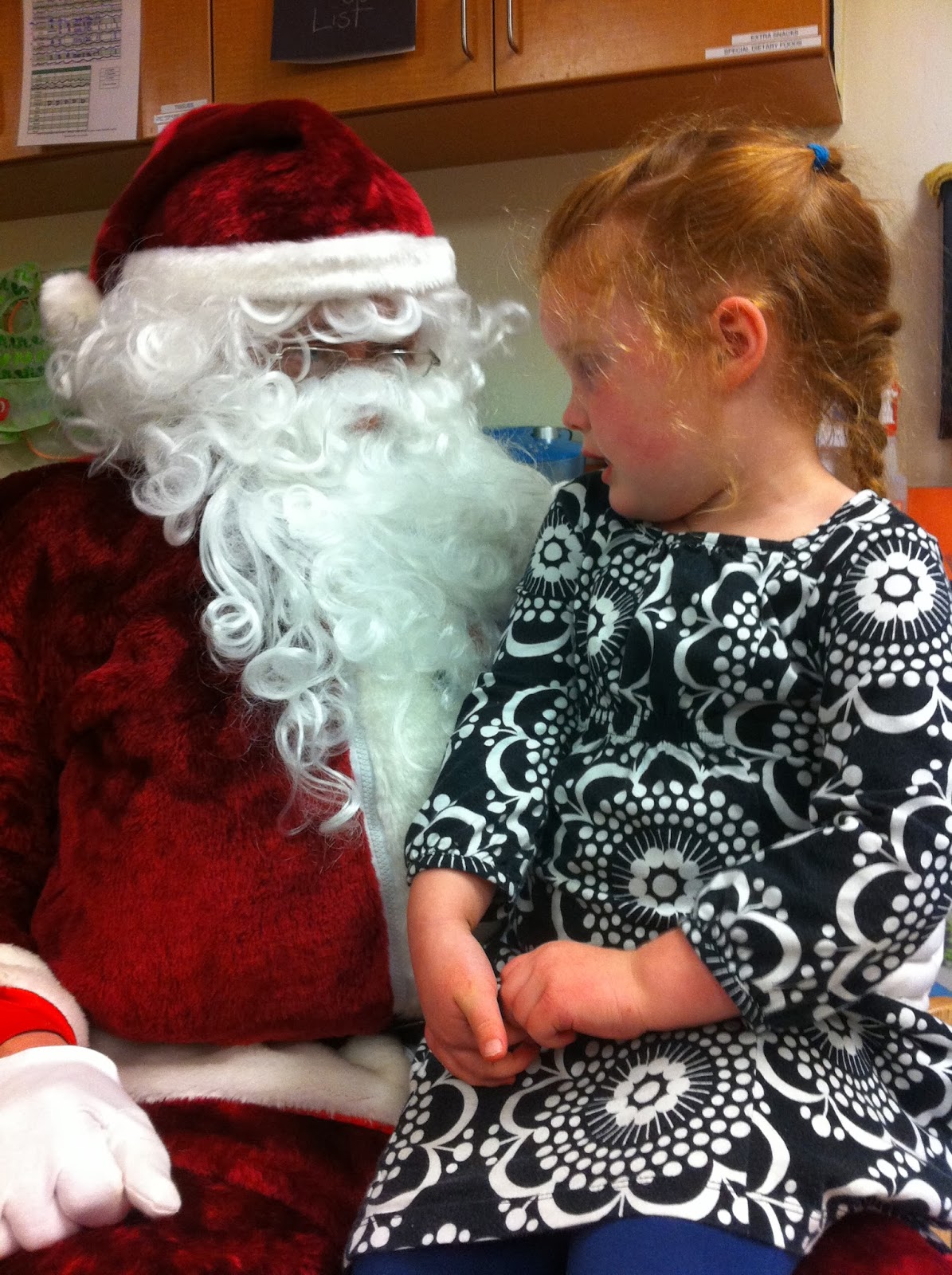 Maggie’s school’s holiday potluck featured a visit from Santa. When asked what she wanted, she told him she’d sent him a letter.