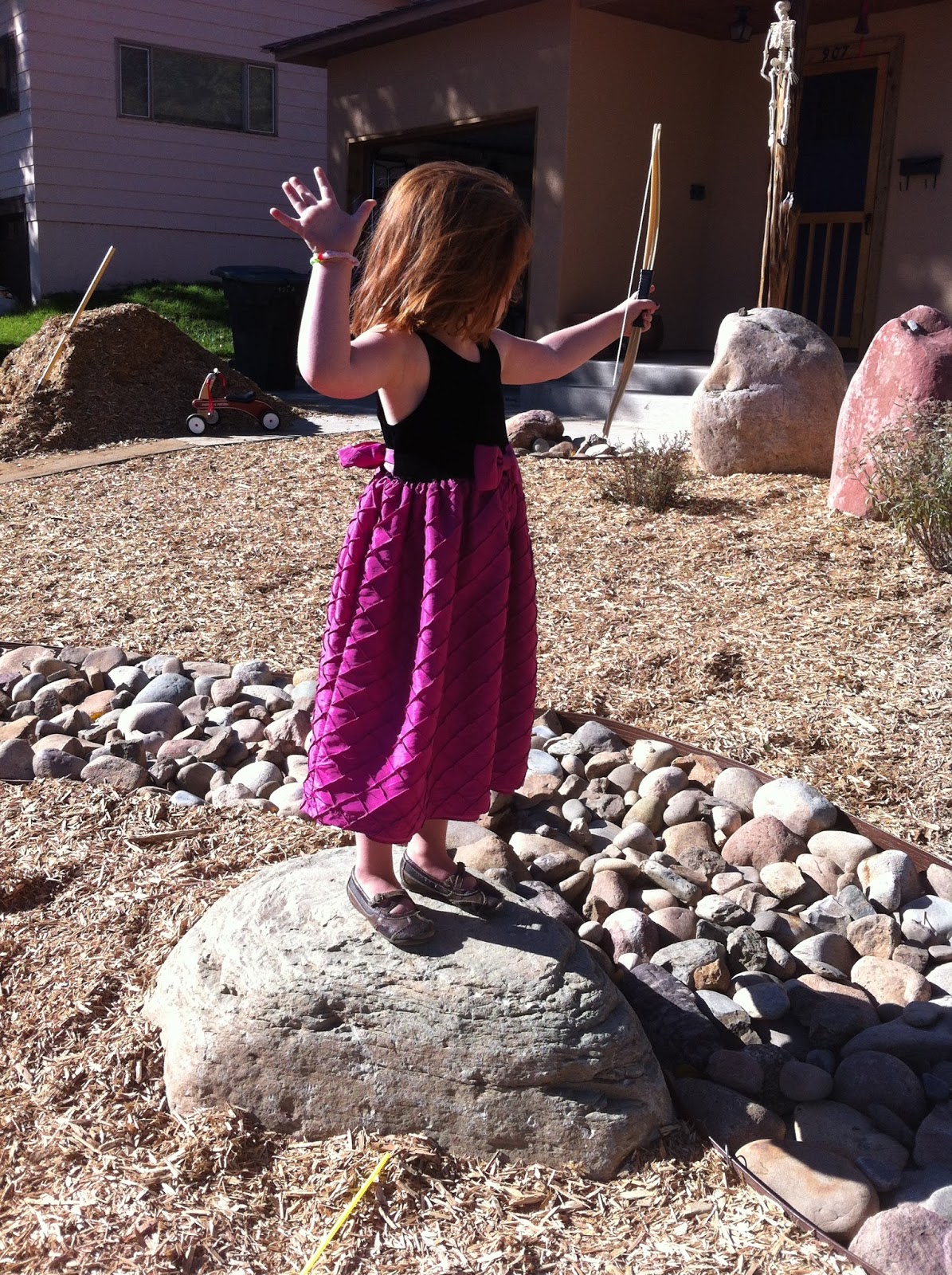 That’s right. Our front yard, xerically designed and south-facing the dessert sun, is growing mounds and mounds of mushrooms. The girls make a daily habit of running around the yard with sticks knocking down the day’s new sprouting caps. (We have a firm rule of no touching with skin – I’m mushroom shy.)