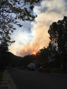 First of all, we are all safe, and expect to remain so. Yesterday a fire started a couple valleys to the west of us. A house caught fire, which caught the yard on fire, which caught the forest on fire, which quickly spread to 100 acres of forest on fire. It certainly looks, shall we say, dramatic from our street. It smells like a campfire even in our home. And when I woke up this morning, there was a layer of ash on our car in the driveway. It certainly felt dramatic and urgent when the sheriff drove up the street and closed off our trailhead with police tape. And then the local police patrolled up and down our street every half hour making sure all our questions were answered. We were advised to pack a “go bag” in case of evacuation, and assured that we would be notified clearly and obviously if it got to that point.
