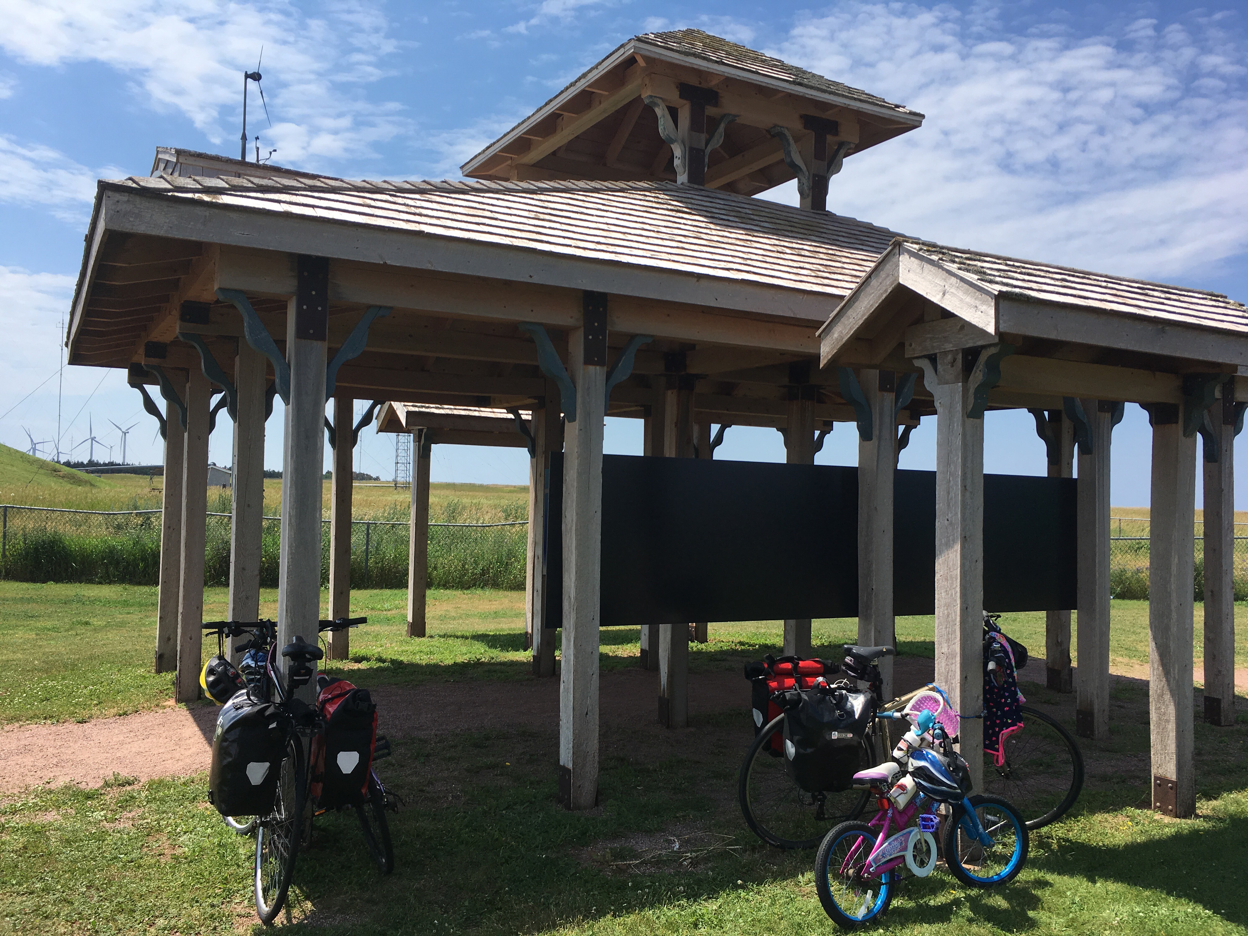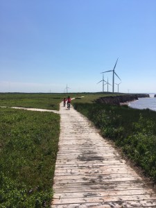 Day 1: Land of Wind and Sea We begin in the north’s wind. Wind turbines make a powerful whoosh. Free hot dogs in the garden! As far north as we could go Bikes loaded and ready to go Biking on a boardwalk on ocean cliffs! Stats Miles biked: 7.8 Turbines passed: 23 M&Ms consumed: 79