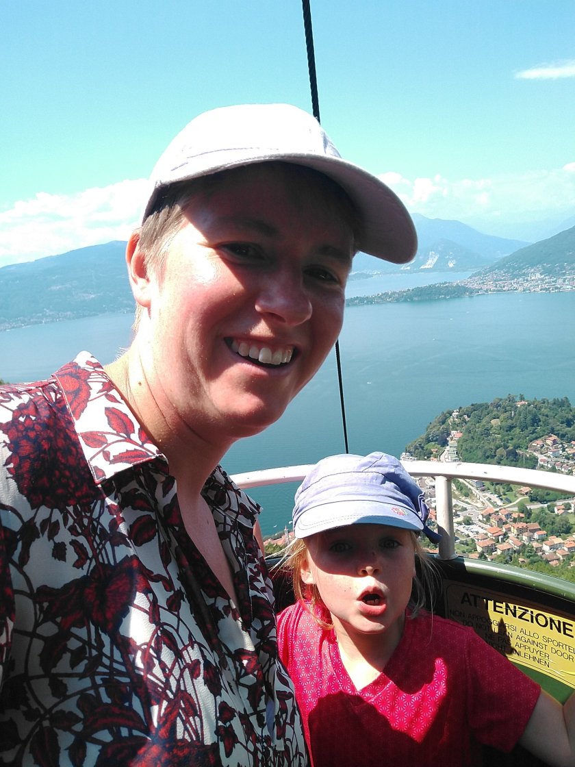 We took the ferry over and found our way to the Funivia (which I guess translates to cable cars). These fancy buckets are 2-standers, so we divvied up and gripped the rails while we slowly climbed higher and higher.