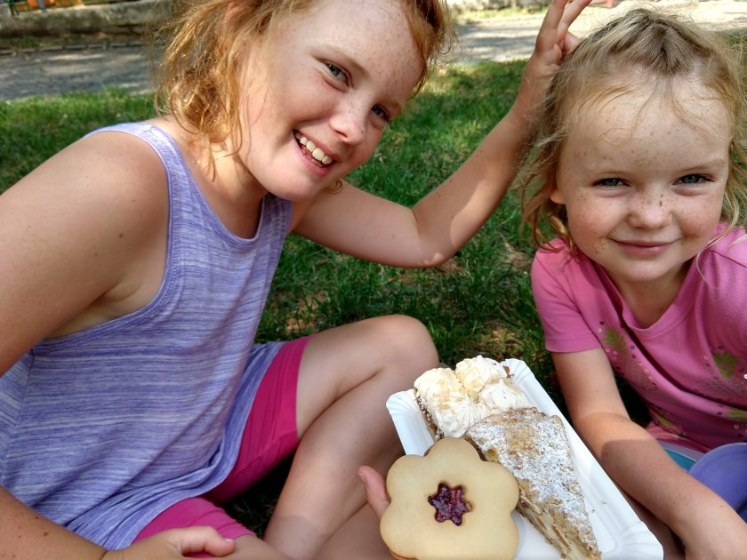 Then we devoted a day to Art Nouveau. Czech artist Mucha was a major player in this movement, and I bet you would recognize some of his advertising posters from the turn off the 19th century. Even the girls enjoyed the little museum featuring his art. “Look at her tiara!” “Her hair is soooo long!” “I like her pretty dress!” And to make the day of art nouveau complete, we headed over to the Municipal Building to gawk at the chandeliers and stained glass and beautiful tiling.