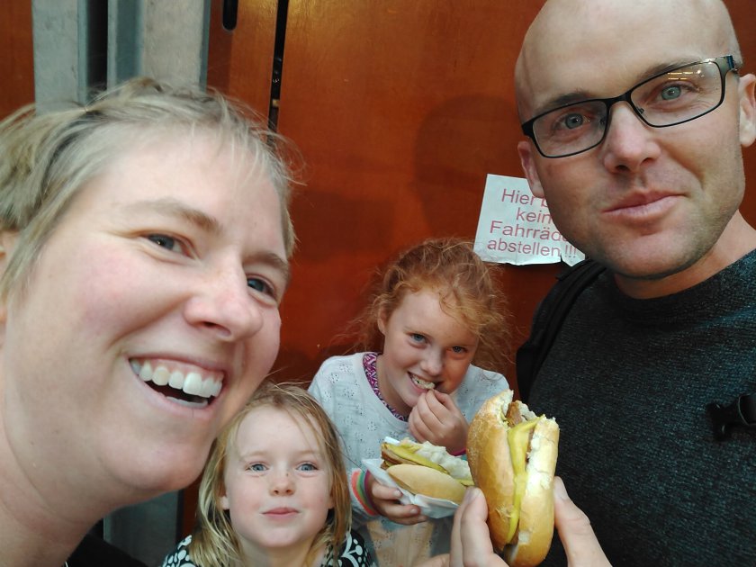 Success!! We are now officially German residents! So we went to a beer garden with sandboxes and trampolines for afternoon snack, then through the rain to a bratwurst stand for dinner, and then to our cozy house (where we get to live for the next 8 months!) for a bottle our local vineyard’s wine.