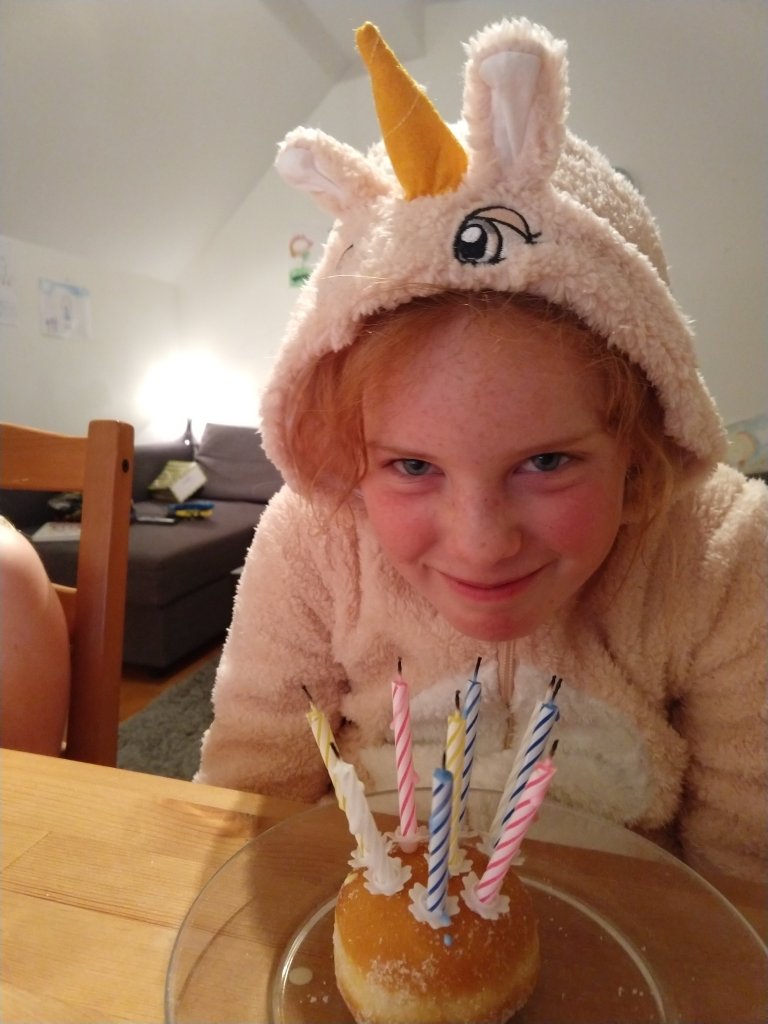 Maggie makes a very cute unicorn. Happy ninth, Maggie!
