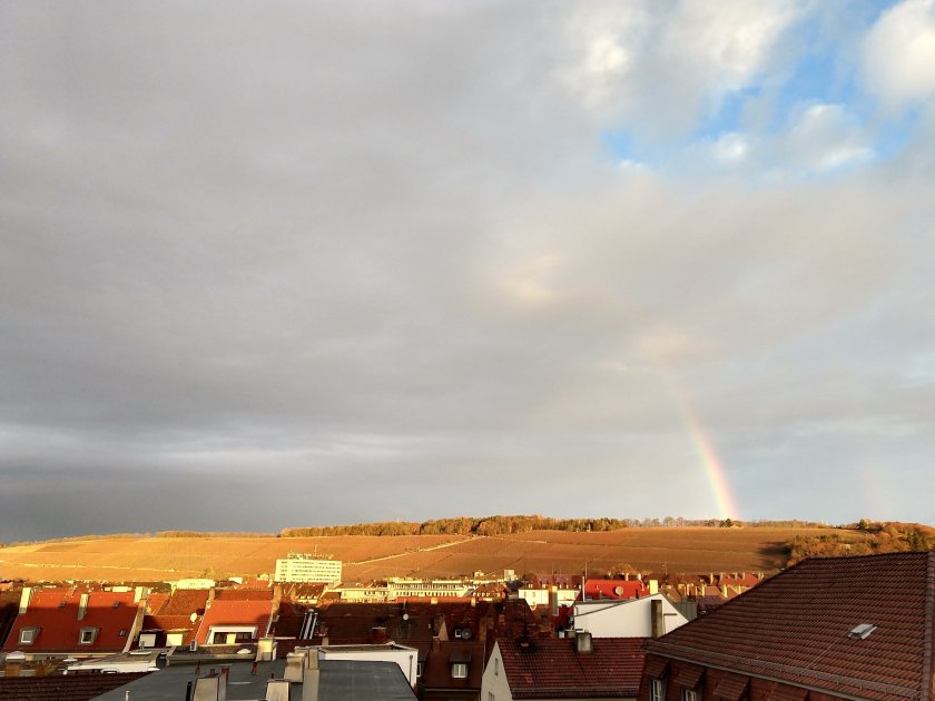 My favorite part is the blue sky next to the rainbow that is the same blue as Michelangelo’s sky in the Sistine Chapel.