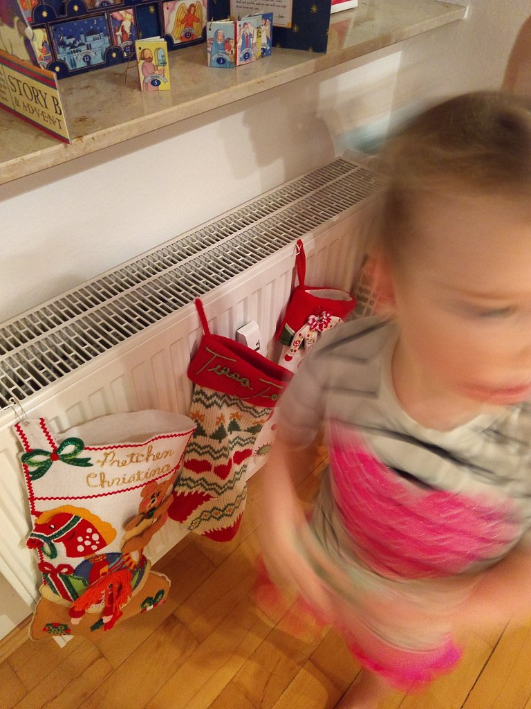 This is the holiday when St. Nick comes and fills children’s stockings (if they’ve left him a sweet treat). We thought we’d give it a try and put our stockings on our radiator with a few pfeffernüsse.