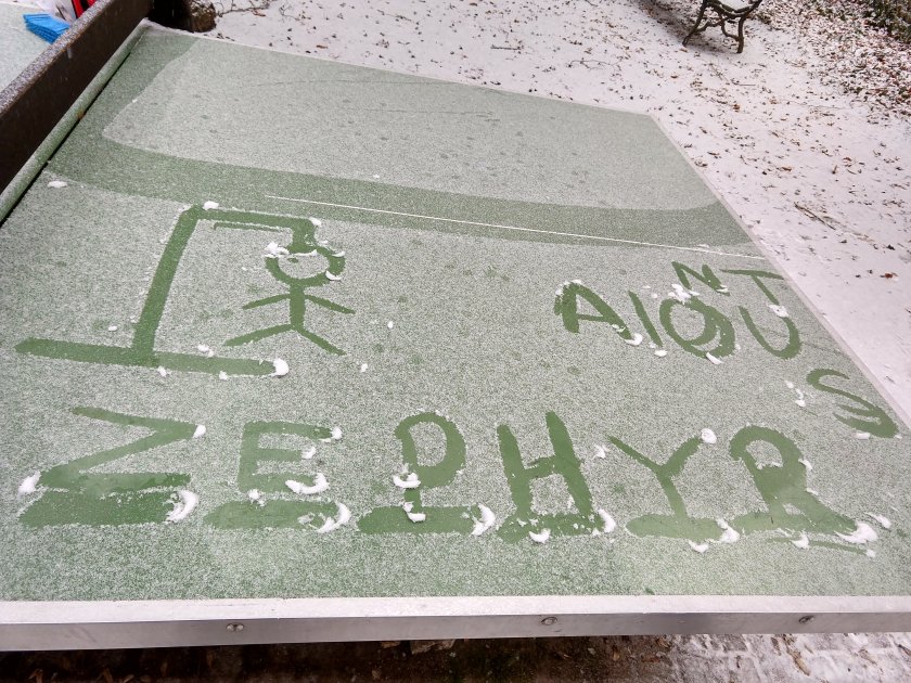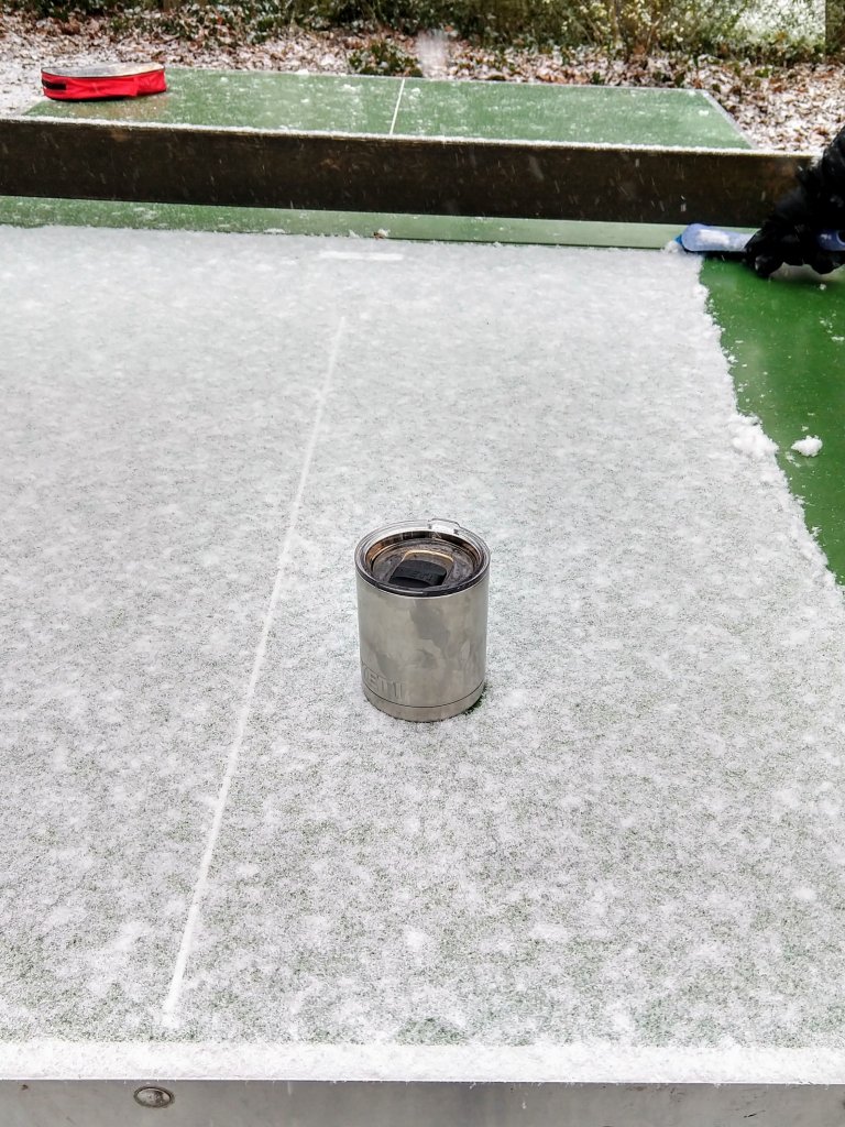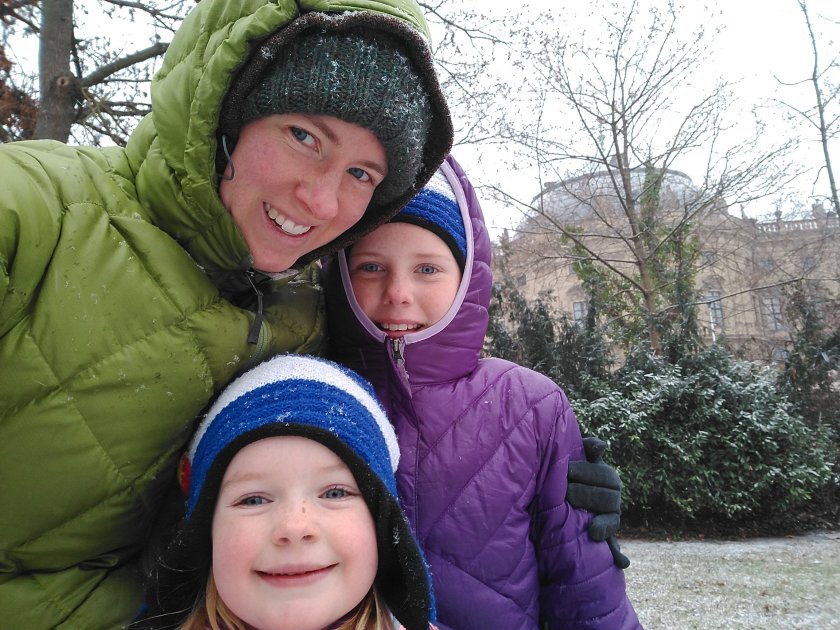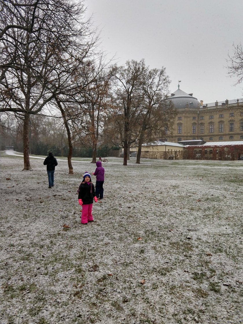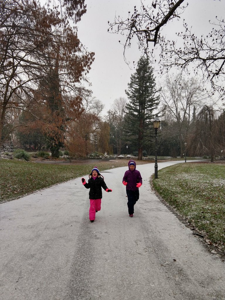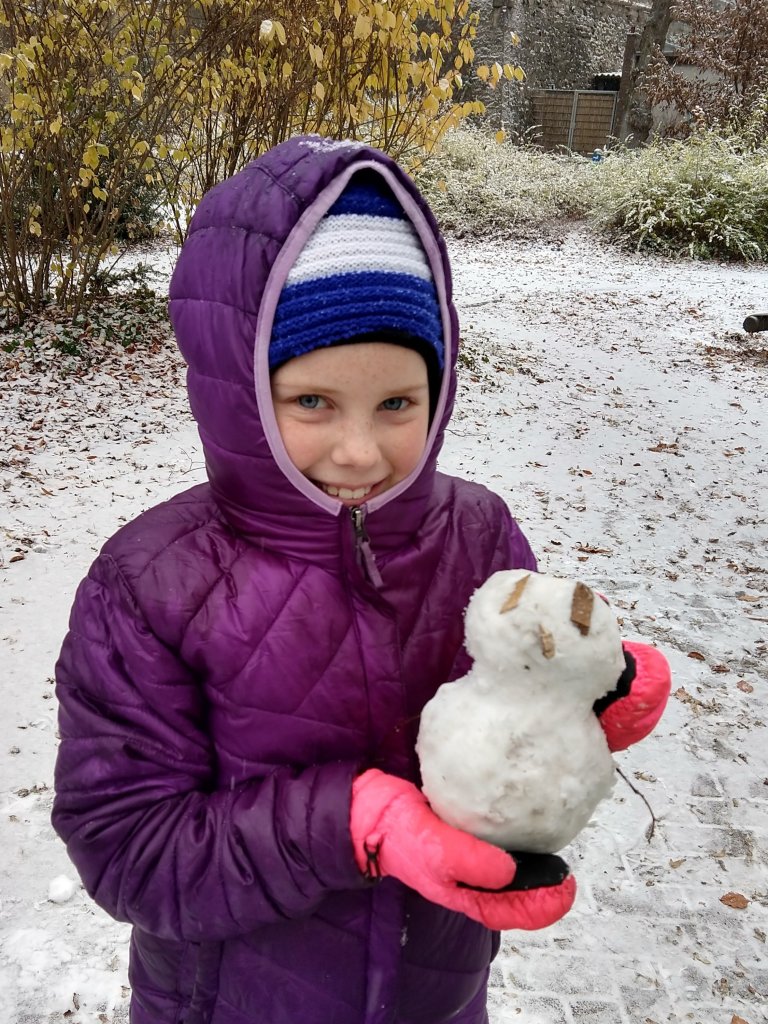 Schnee! It’s our first snowy day! So we went to the park and had some fun playing ping pong and making snow babies!