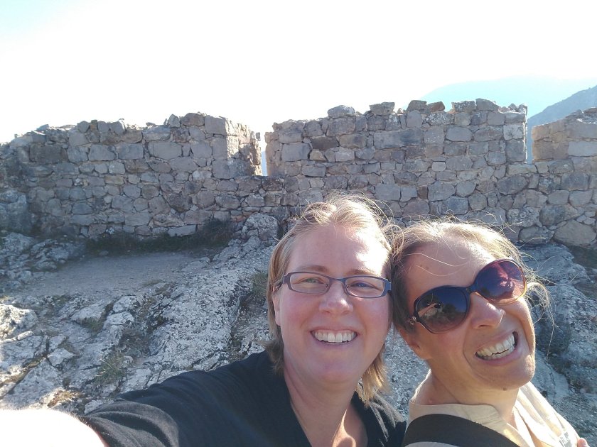 One day we stepped into Italy. One day we hiked among free-roaming horses wearing bells. We climbed a bunch of stairs to a ruined chateau one evening. Ate lunch on the roof of a WWII fortification. Crossed bridges without getting our feet wet, descended rocky slopes without falling on our bums, walked 40 km without getting lost, and summited a mountain (for the first time together) without it hailing! Oh, and we didn’t get sunburned either; wind-burn, yes, but no sunburn!