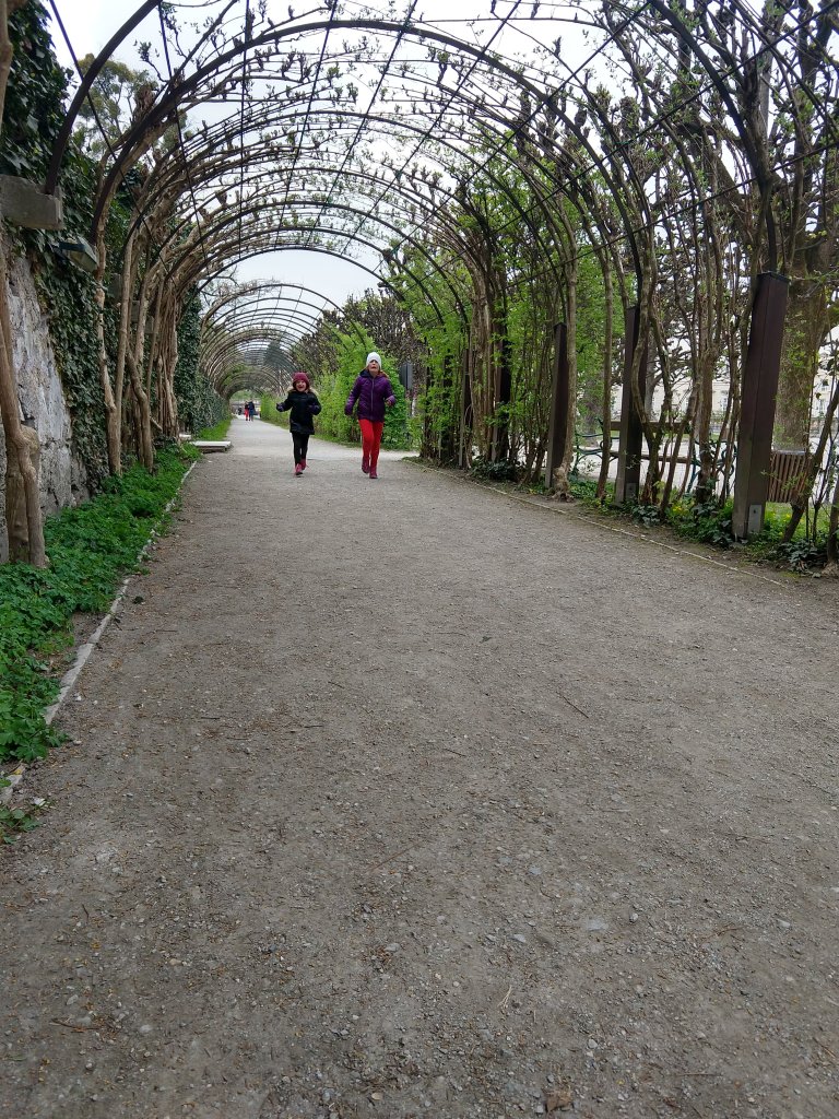 We also visited Hellbrunn Schloss, a pleasure palace just outside town with extensive gardens and a playground and a beautiful house and trick fountains. We didn’t know exactly what that last part meant either, but it was included in our admission tickets when Bill and I wheedled a little mini-date out of Grandpa, so we got to find out!