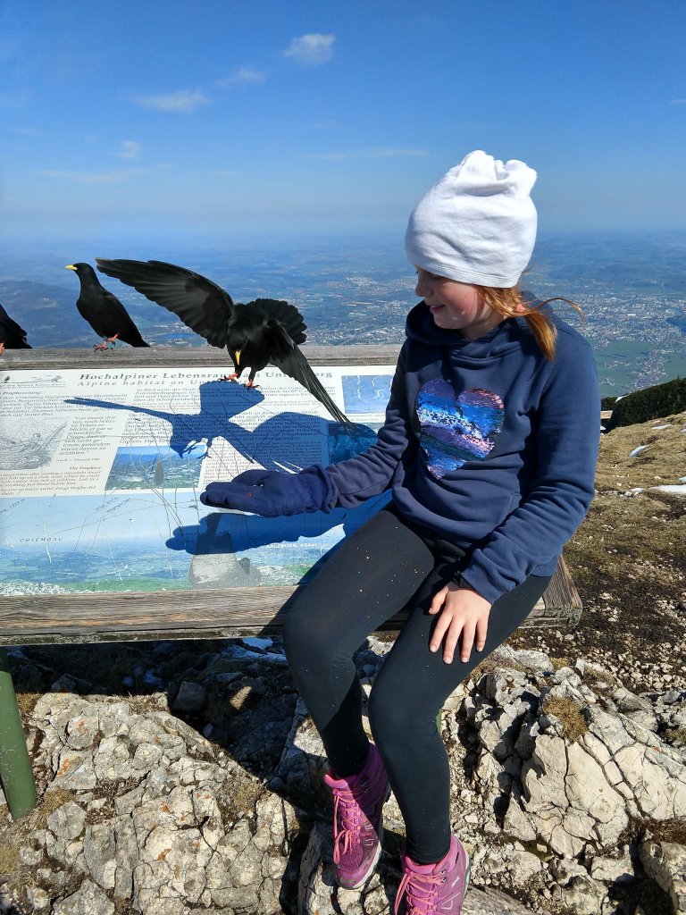 And of course it was breathtakingly beautiful! Plus a local couple knew the birds, called them over (really, they called the birds), and poured raisins in Maggie’s hand so she could feed them.