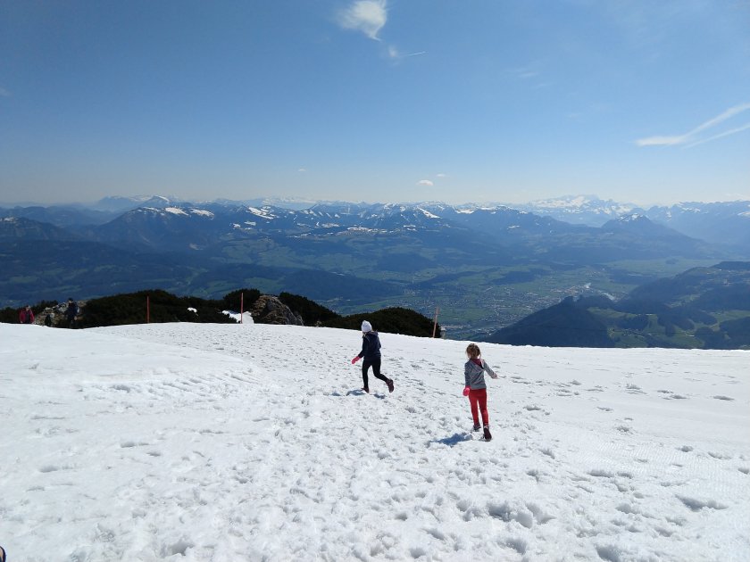 Of course that wasn’t all we did. We missed snow this year (sorry to rub it in, Durango-tans), so we took the Untersbergbahn (a big enclosed cable car) up to the Alps. There were snow balls to be thrown, mini snow men to build, slopes to foot-ski down, ice blocks to crush.