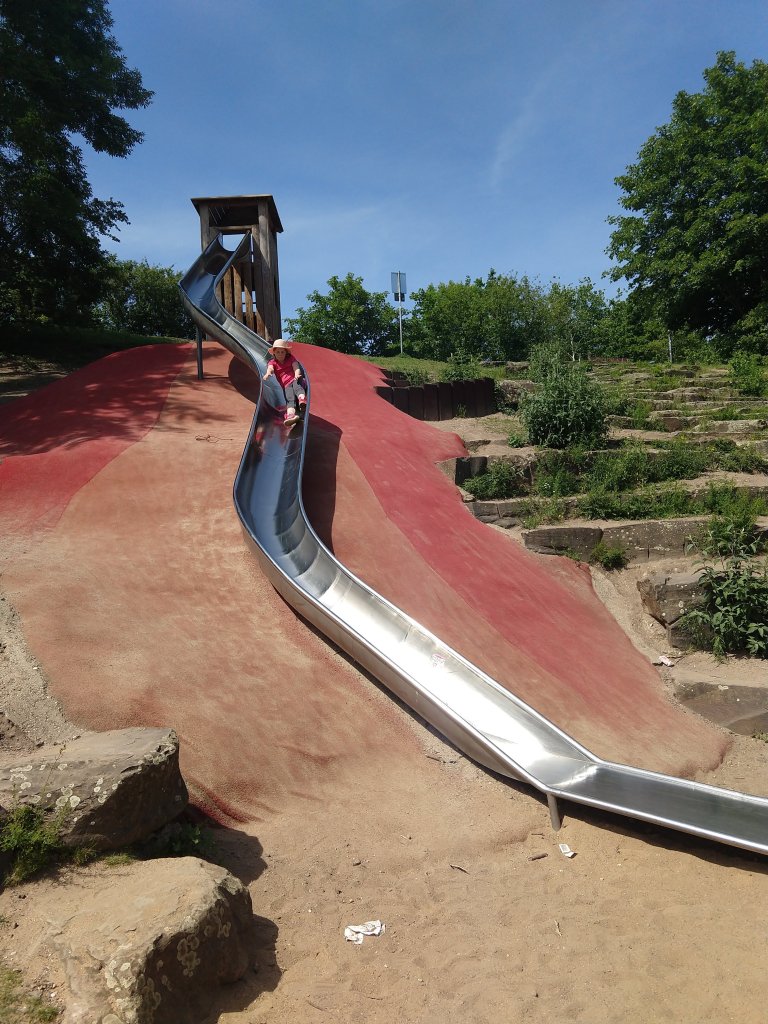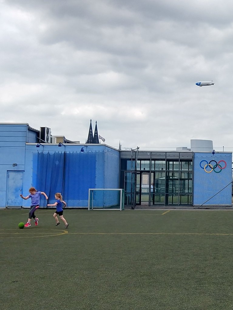Well, there’s lots of attractions. Like Germany’s largest cathedral — Episcopal, not Catholic. And a zoo with an amazing elephant habitat. And an indoor water park with slides galore. (Remember that place we went in Prague? This was very similar, with one additional slide that scared the pants off me: You stand with your arms crossed over your chest, and then the floor drops out from under you. You fall until the slide actually goes back up to almost your original altitude, then shoot down toward the light at the end of the tunnel. Lucky to be alive, people, I am.) And a chocolate museum, and an Olympic museum. And the beautiful Rhine River, with amazing green space everywhere.