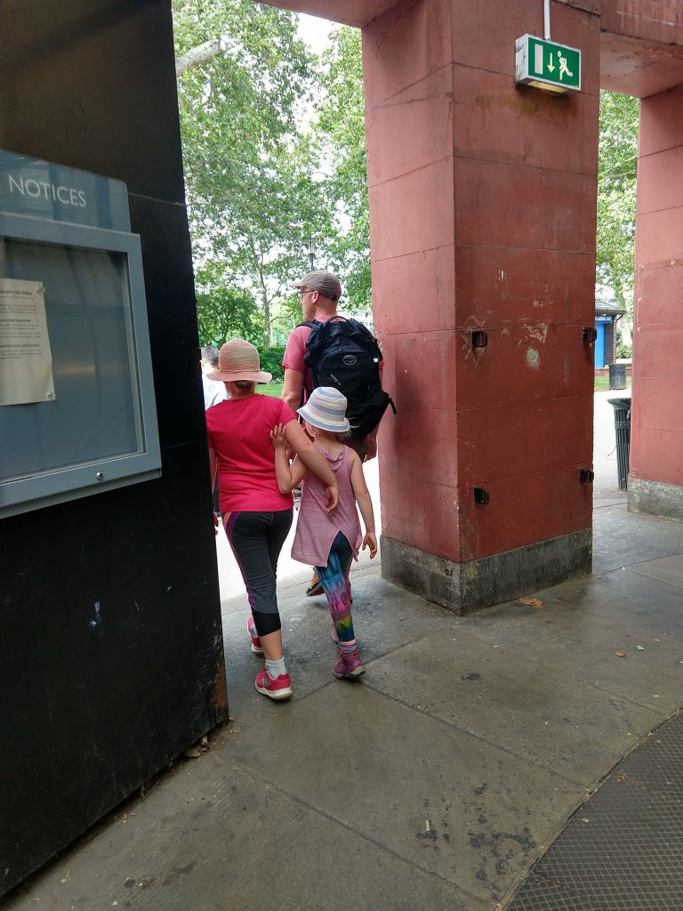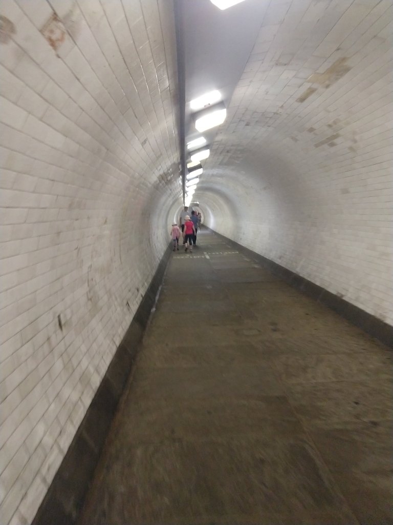And we walked under the Thames, through a ruddy long tunnel.