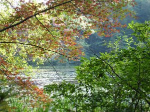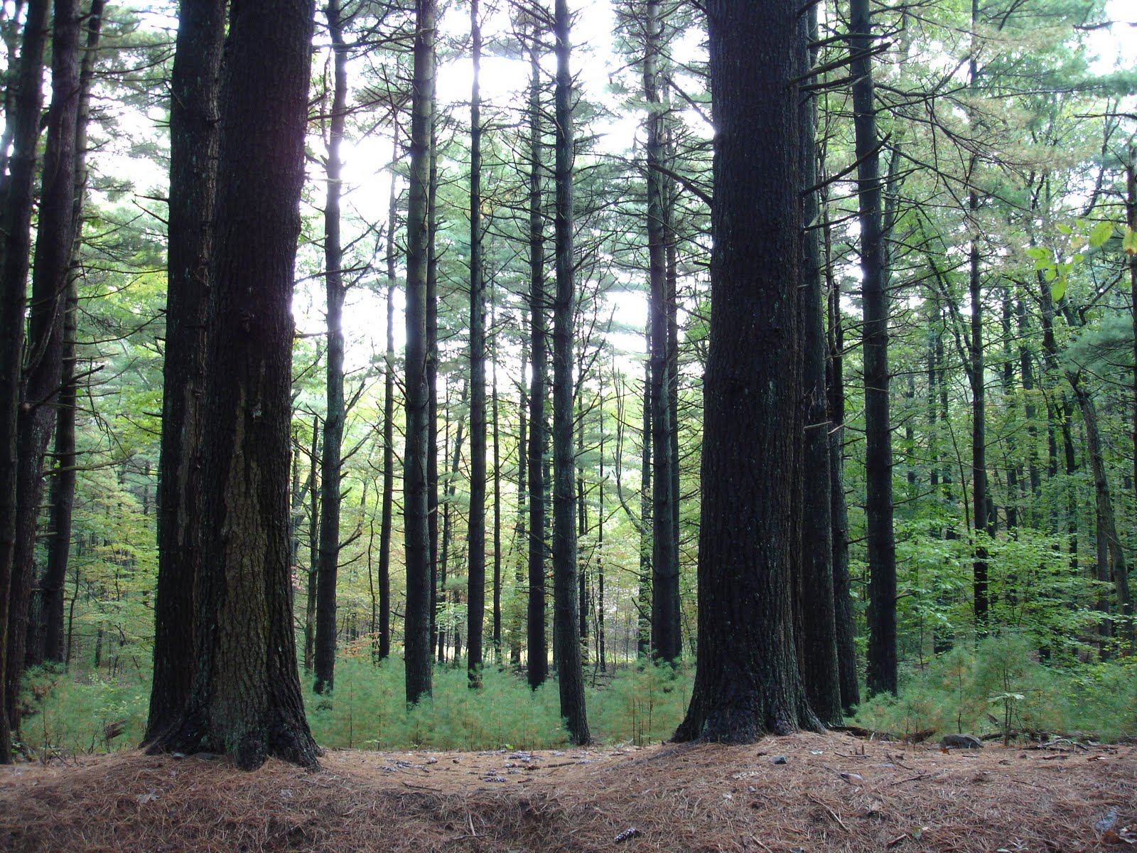 The trail went up. It went down. It went through foresty forest. It went through piney forest. It went past rocks and ponds. And there were only a couple of other people out. The dogs scampered and snarfed and generally ran amok, obviously enjoying themselves and getting all tangled up in their leashes.