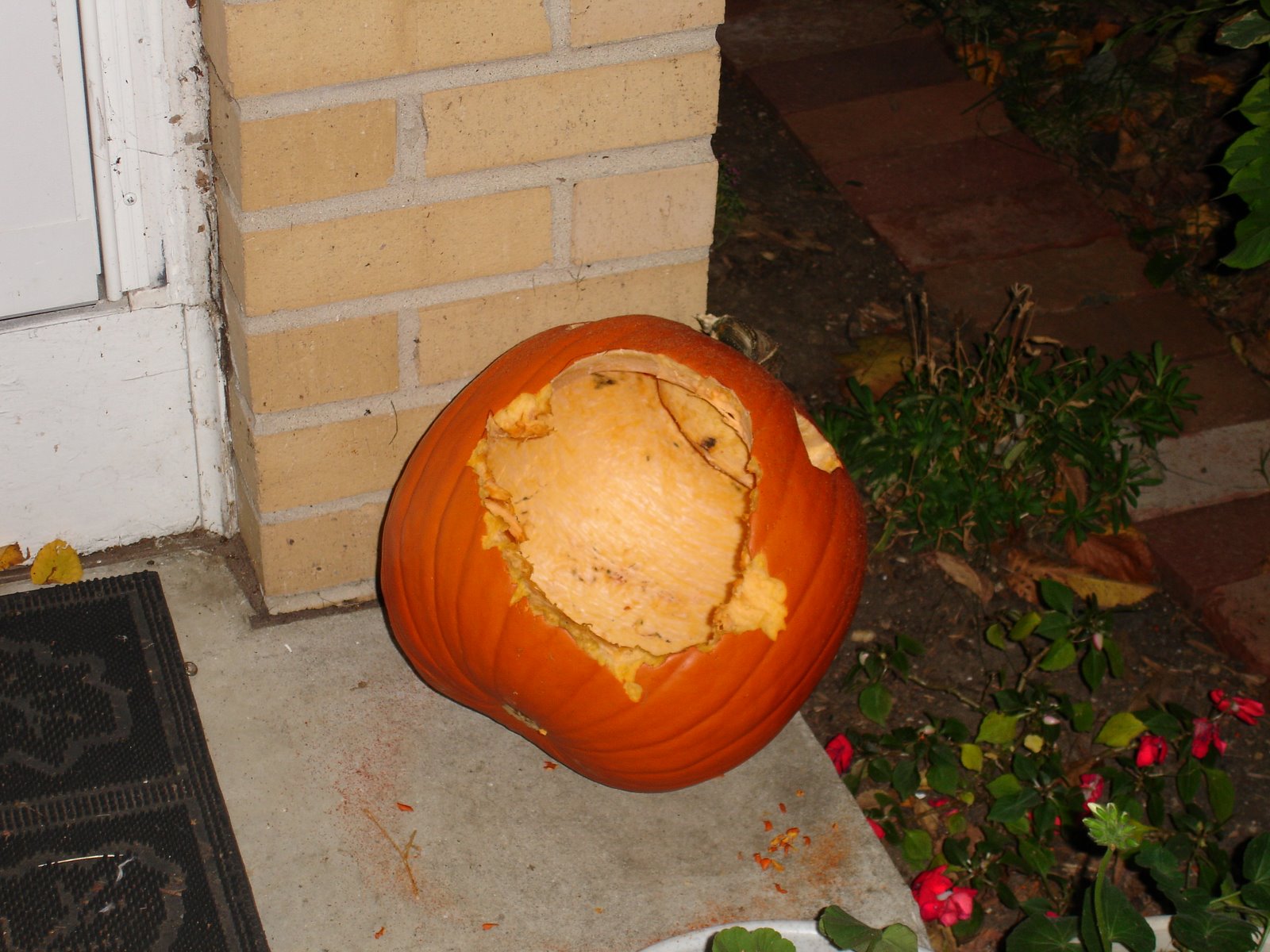 Well, Mike Wazowski didn’t make it. I know it’s a graphic photo, but I feel it’s important to spread knowledge of how much damage these squirrels are doing in our community. Mr. Evil Pumpkin and Mr. Ghost have also had to be removed, but the carnage was just too horrific to post any pictures. Listen, people, you only have one chance to save the pumpkins. Reapply bitter spray. Keep current on red pepper flake sprinkling. Booby trap with moving parts if you have to. One moment of distraction is all they need. Good luck, fellow brethren, and Happy Halloween!