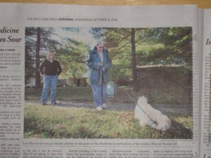 Guess who was in the New York Times today? Not either one of us. But someone we know! A coworker of mine, actually. My trainer and orientator when I started working here, and my “Why does this work this way?” go-to-girl still. The article (which starts on the front page — A1, baby!) is about prescription drugs and the decline in American use thereof. Lori is currently the primary care-taker for her mother who has Alzheimer’s and is deciding whether to stop paying for some of her mother’s expensive and minimally effective drugs. She wrote about it on her blog and the New York Times picked it up! This is the picture of her and her mom which appeared on page A18 for the article.