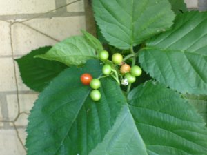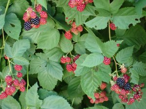 I went out into the garden yesterday to harvest some blackberries. (Yes, that’s right! The blackberries are ripening. Five or six at a time!) I expected to be picking bullbous juicy dark runny berries. But this is what I found.