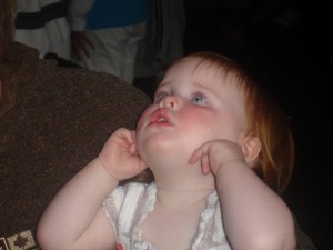 Maggie so much wants to be part of the party. She wants to be participant in what everyone is doing. When we laugh at a joke, she laughs too, even though she obviously can’t follow the thread of the humor. She notices now when she has something different to eat for dinner, and complains about it. She wants to watch everything happen and get her fingers in on it too. She stares and mimics and follows and leads and is generally a part of the conversation.